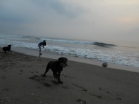休みの朝は海へ散歩が楽しみ。