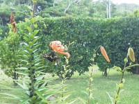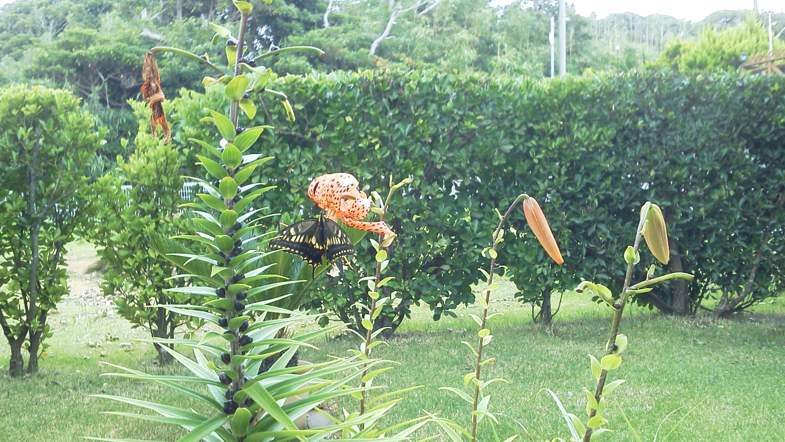 鬼百合が咲くと必ずアゲハチョウがやってくる。