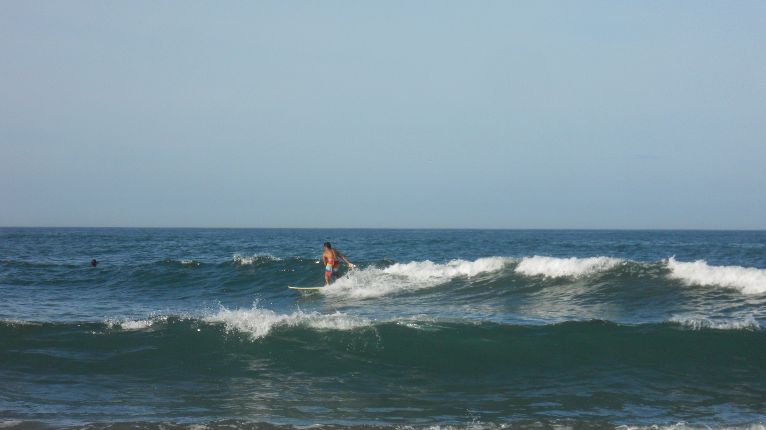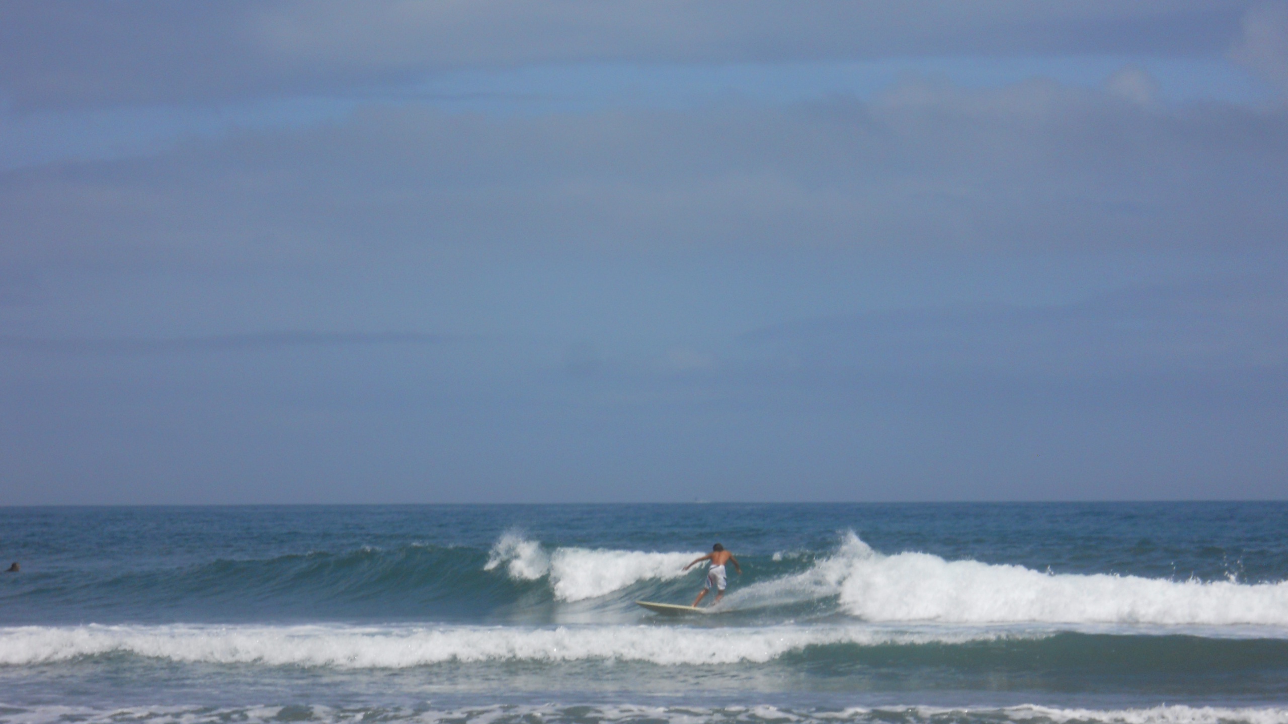 やっと7’6″で楽しく乗れる波に当たった。