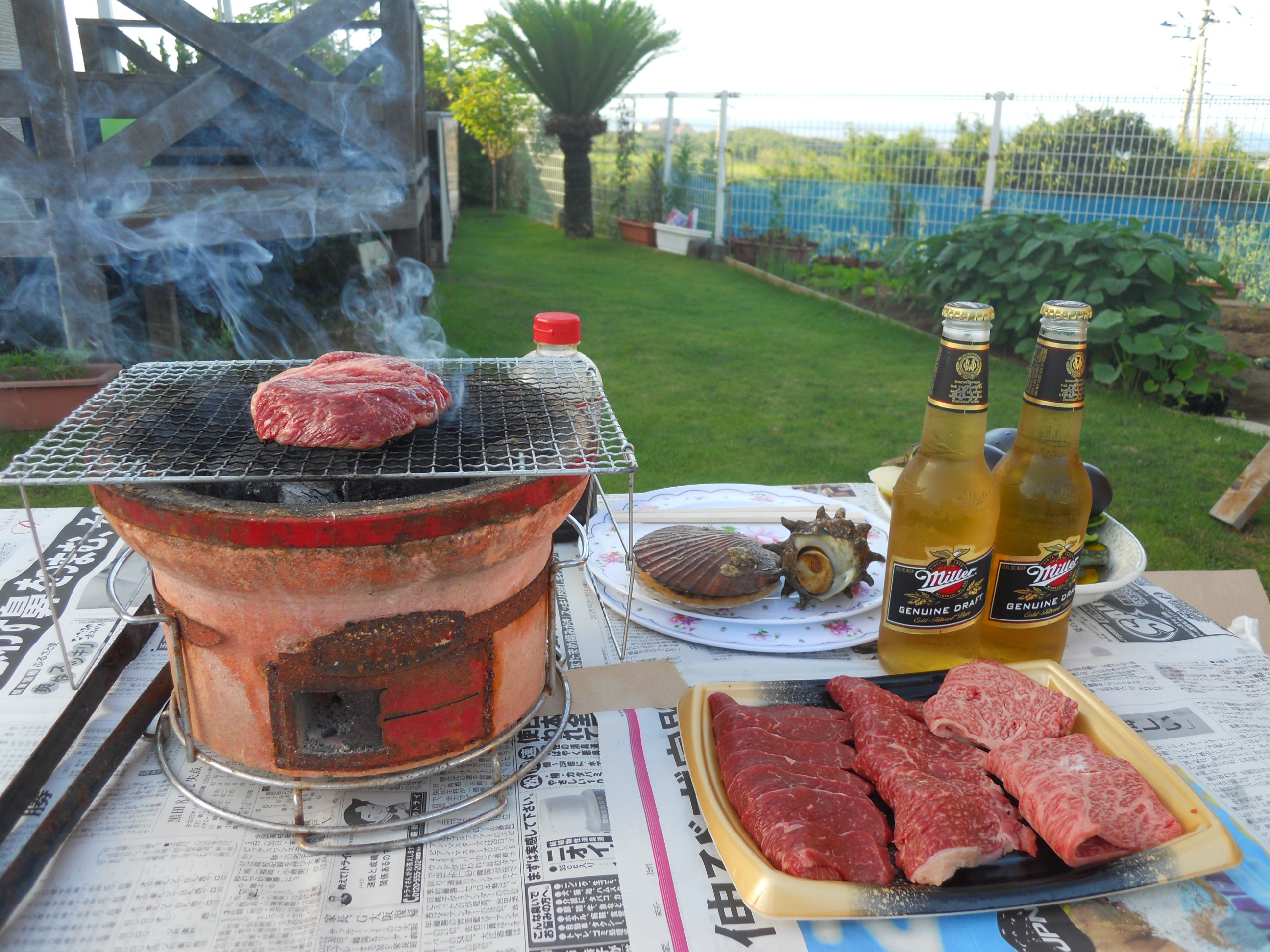 夜ご飯はバーベキューでビールと一緒にやり直し。