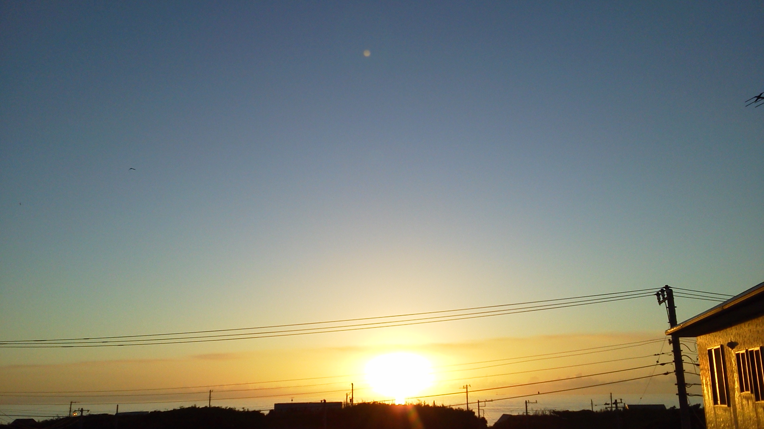 今日も綺麗な朝日だけど波はスモール。