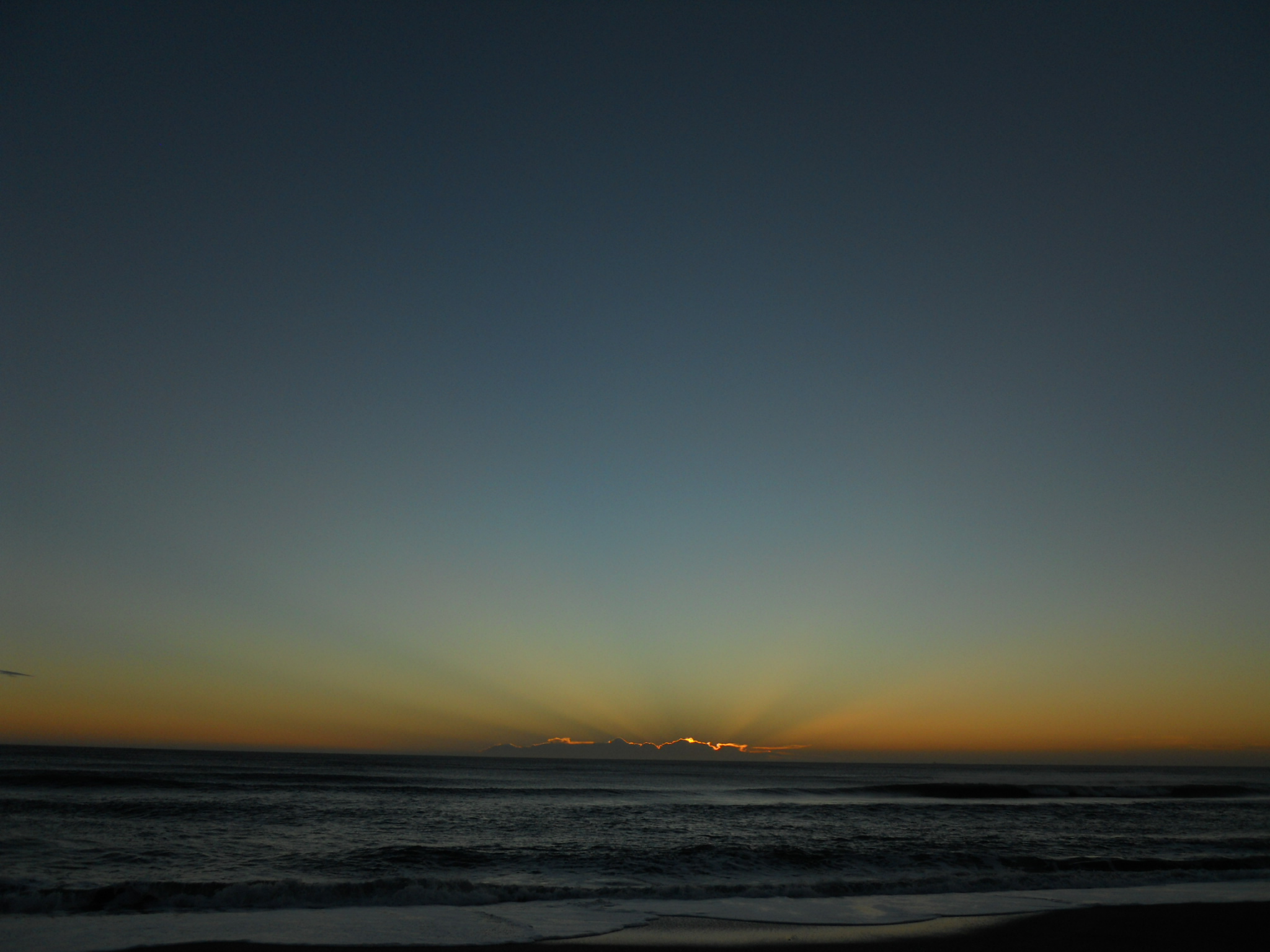 水平線の手前の雲から光が差してきた。