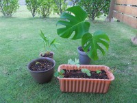風呂に置いてあったモンステラの根が伸びすぎて植え替え。