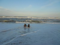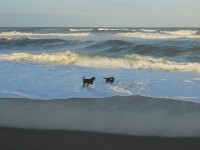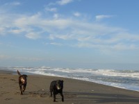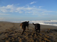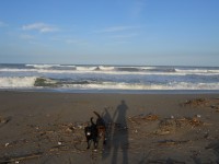 ボール遊びをしてから砂浜を散歩。