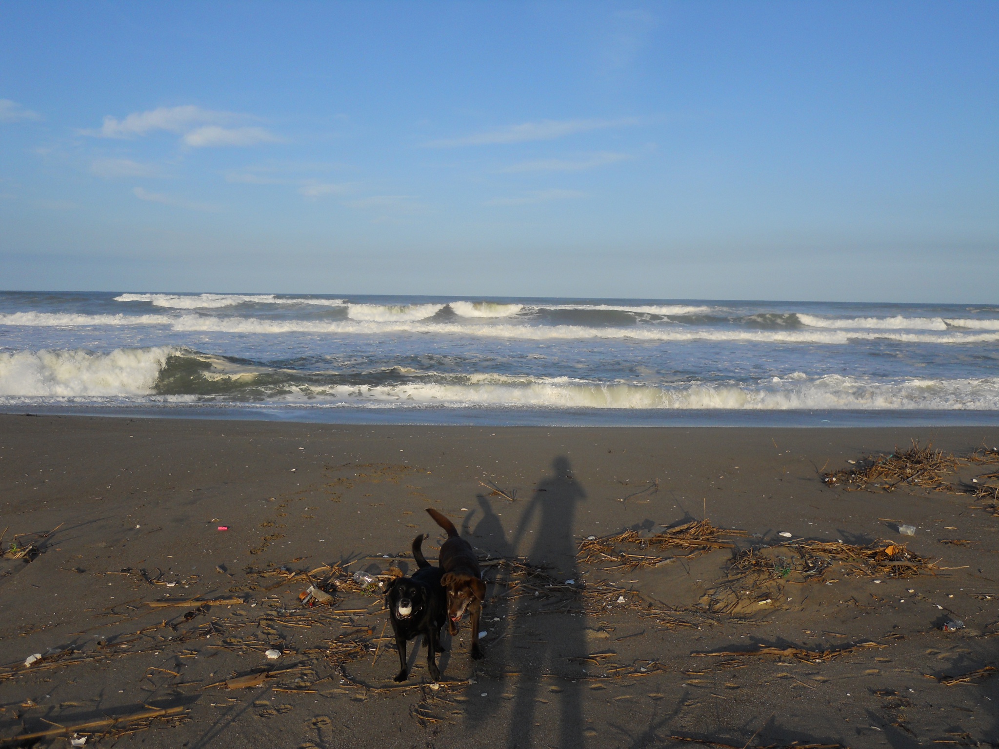 海を写真を撮ってみると夕方で影が長い。