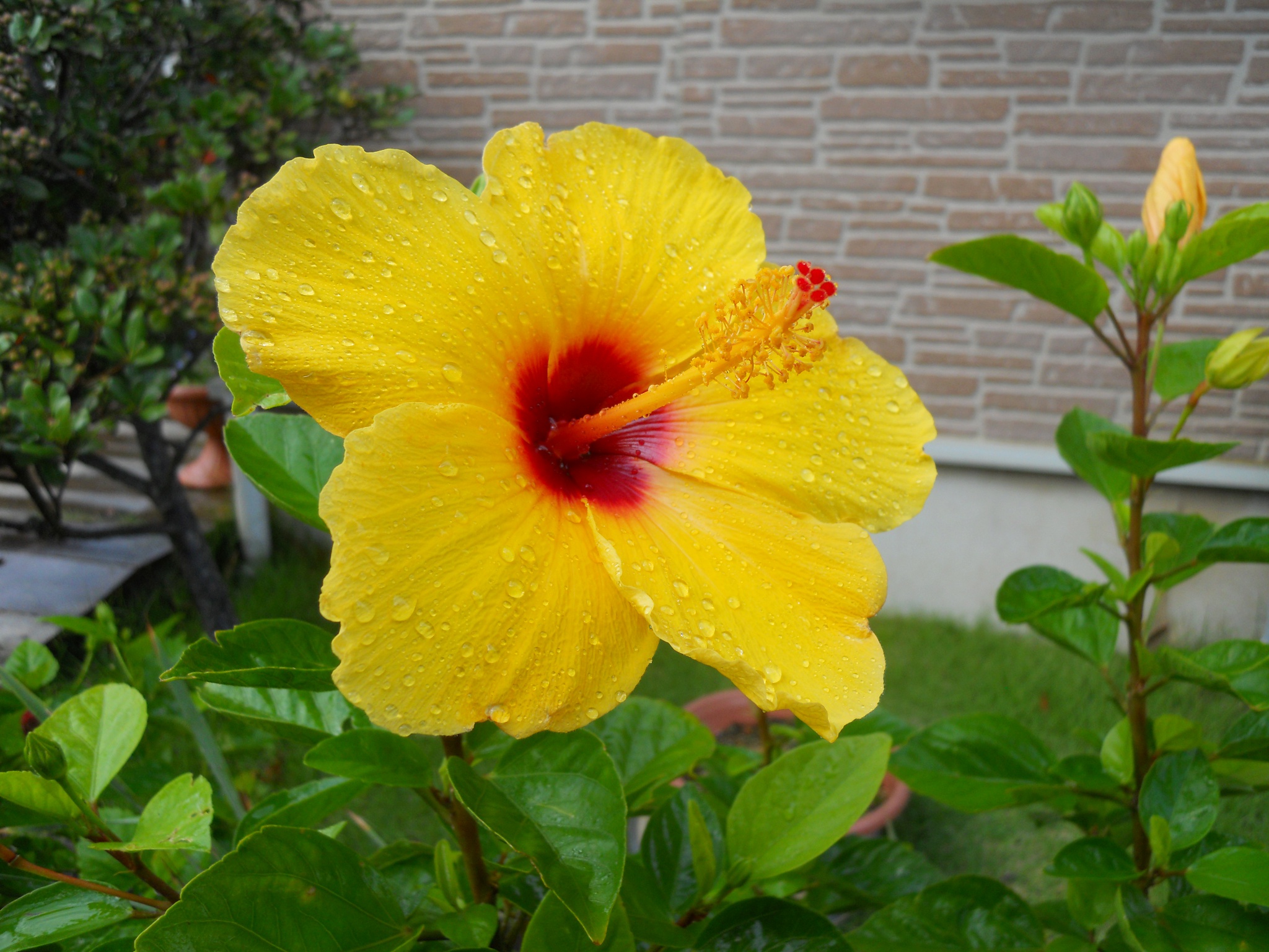 天気は曇りだけどハイビスカスが咲いている。