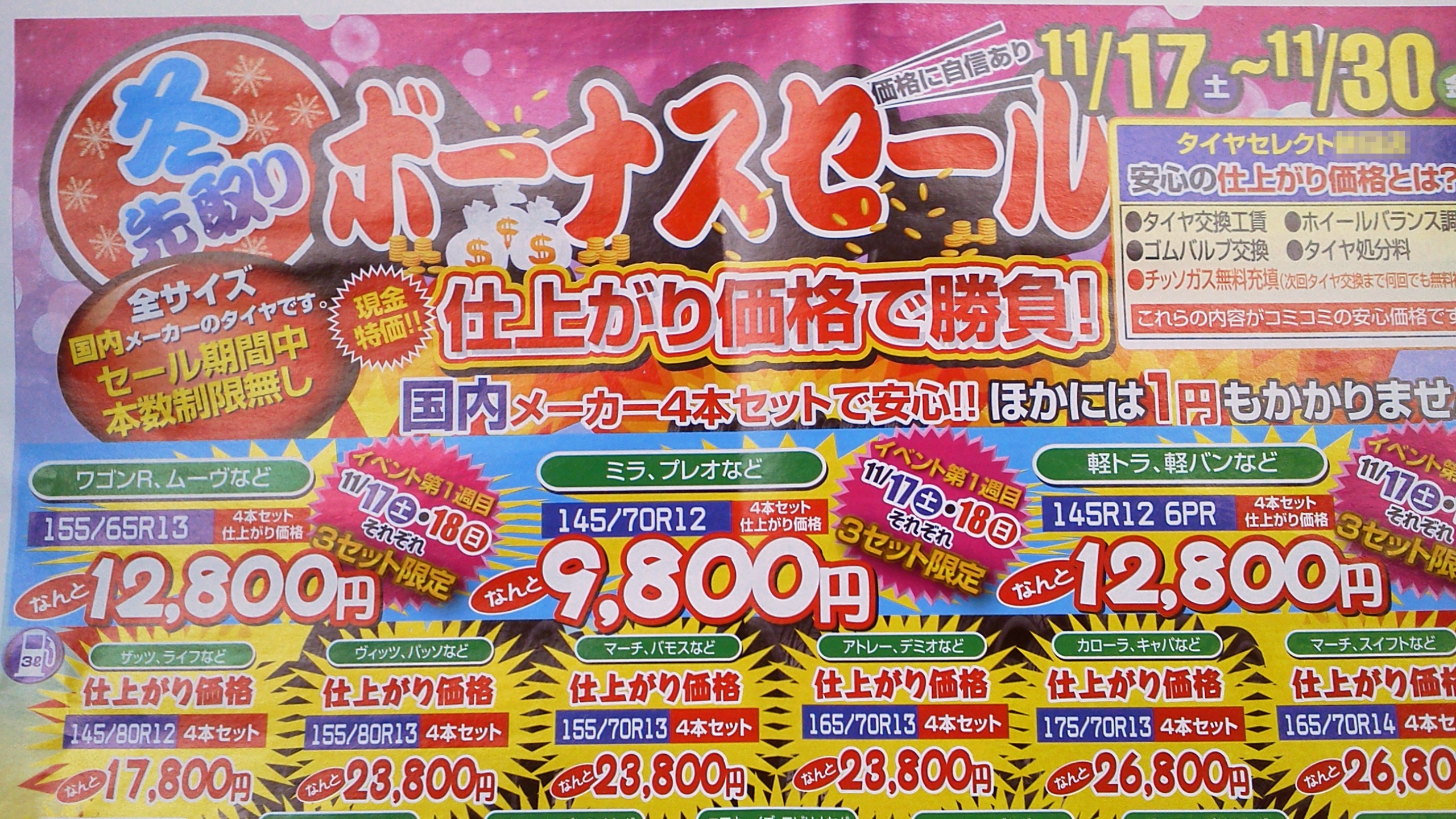 朝の広告を見るとタイヤの大安売りを発見。