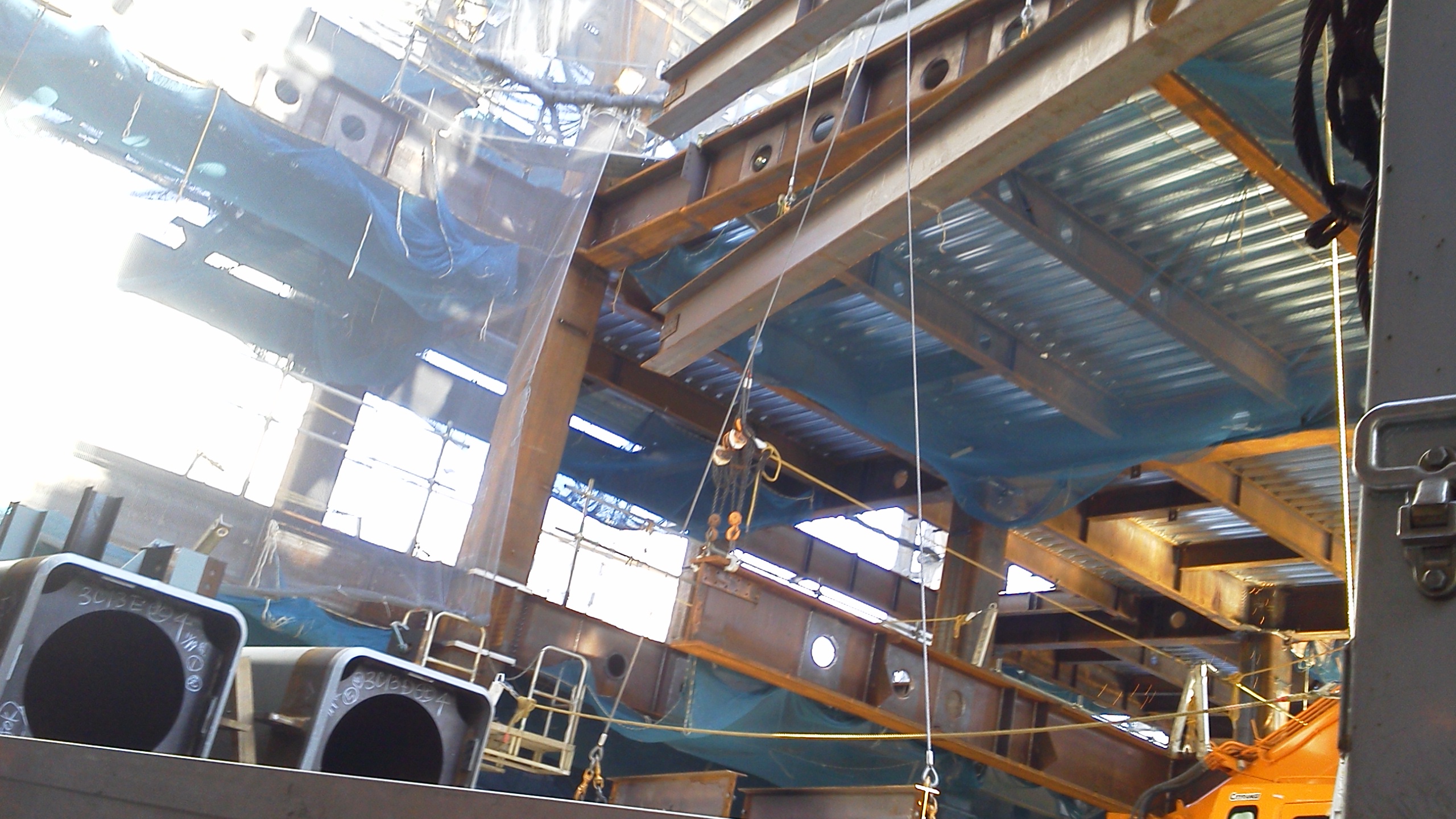 前回よりも狭くなってて長い鉄骨を3本吊り。