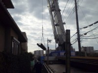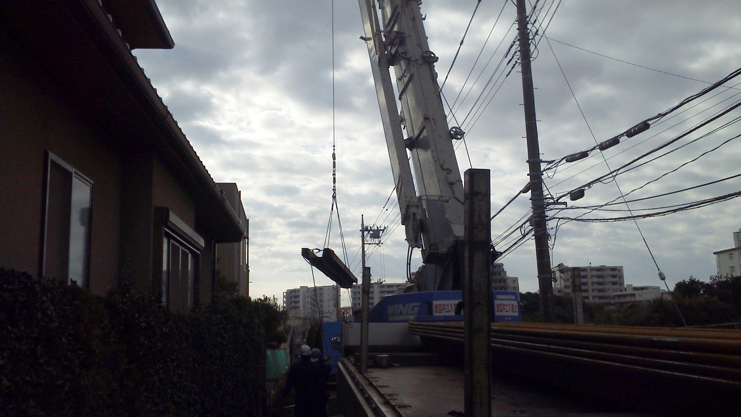 道路を拡張するのに民家ギリギリで仕事。