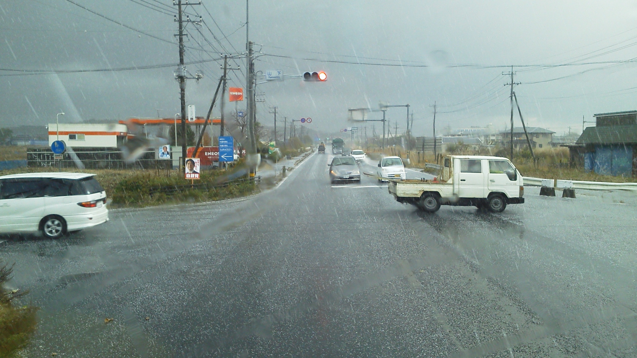 雨の予報なんて言ってなかったのに積むころから土砂降り。