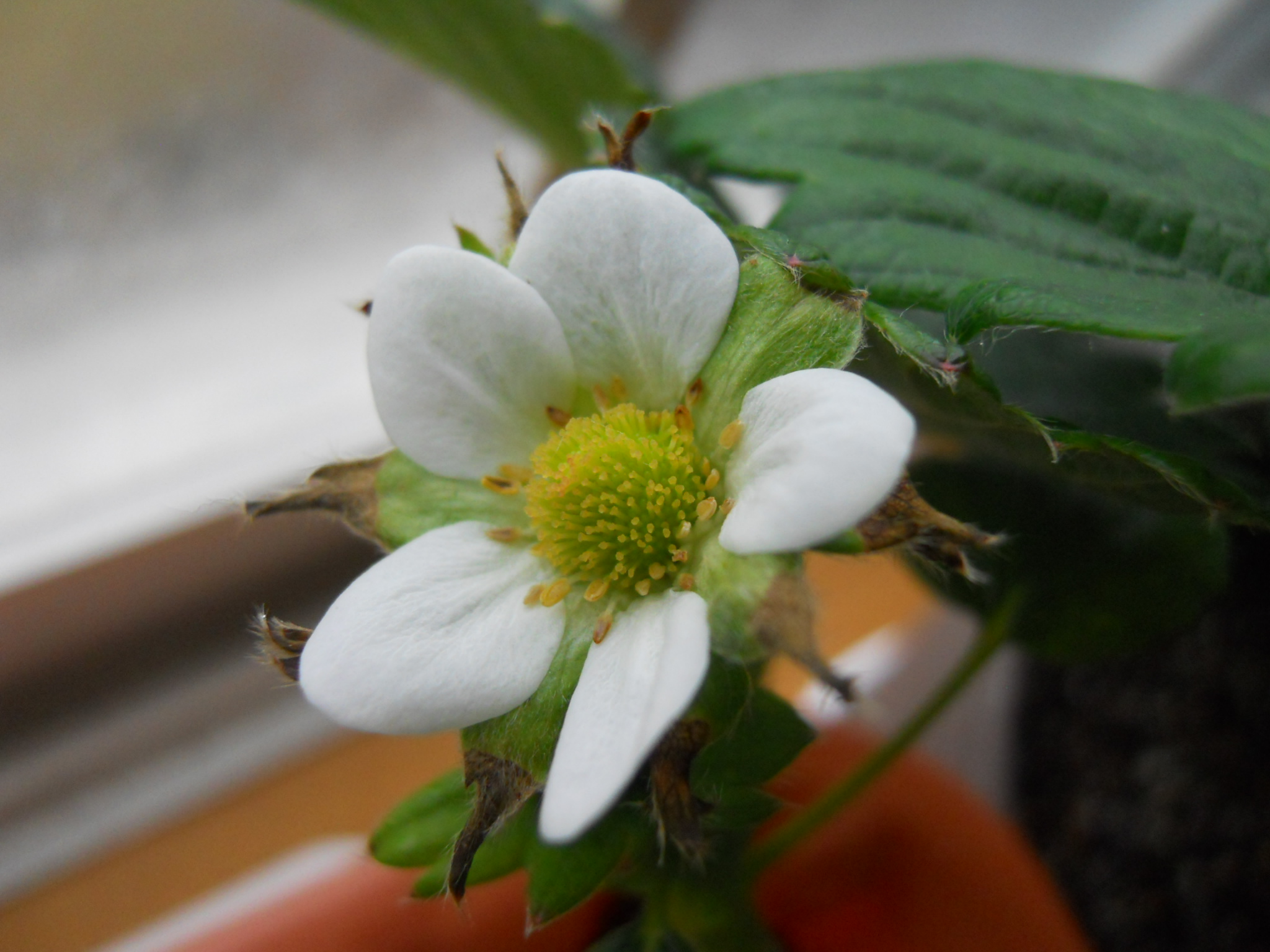 家の中で育ててるイチゴの花が咲いた。