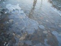 凍ってる所を歩くとまったく足跡が付かないのがわかる。