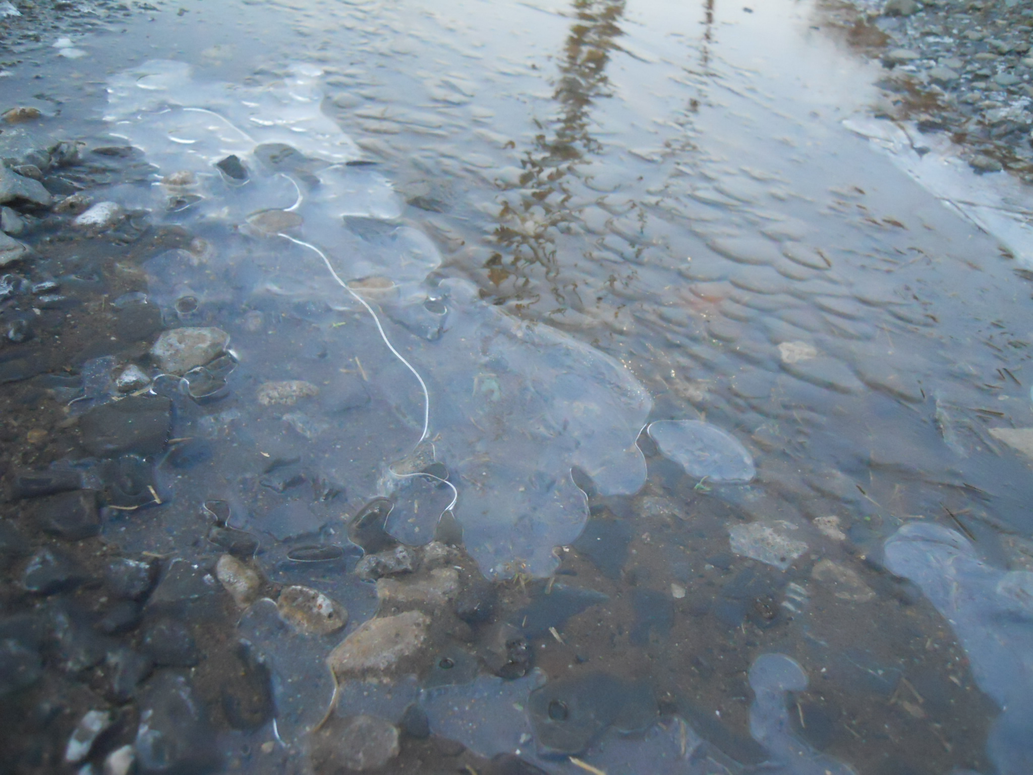 左は昨日のメイクの足跡が凍って残っている。