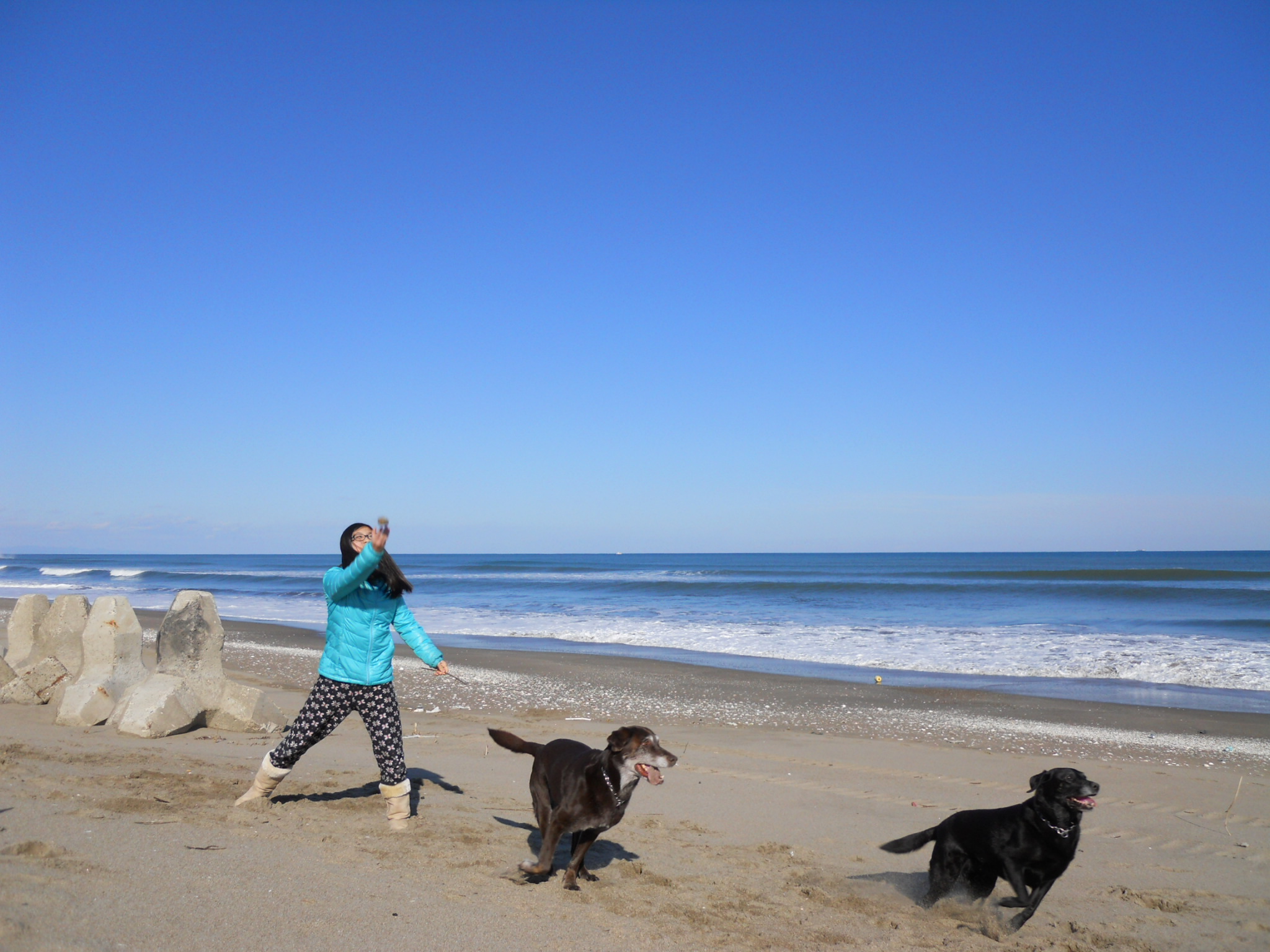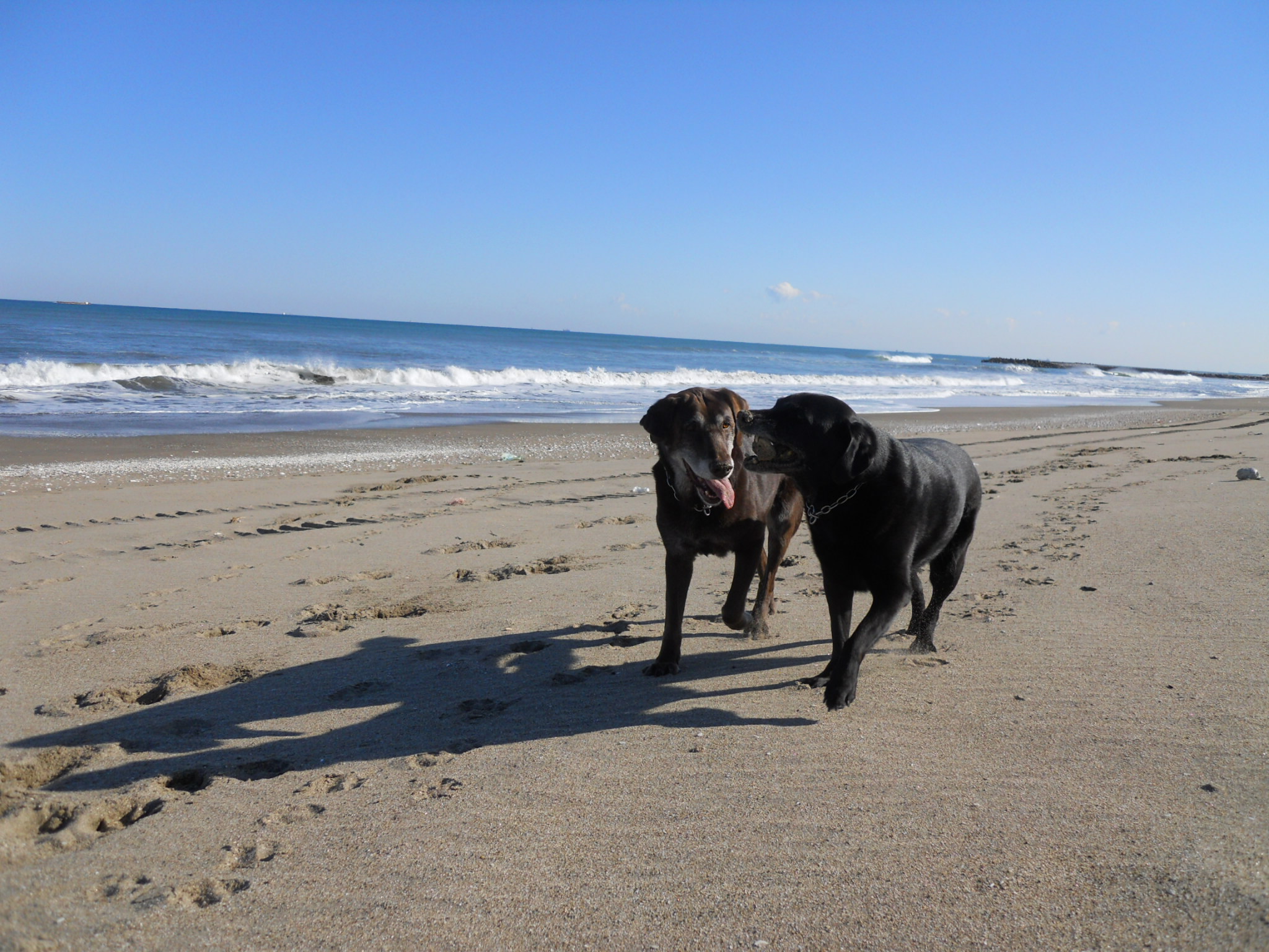 昼の散歩で海に行くと海はいい感じ。