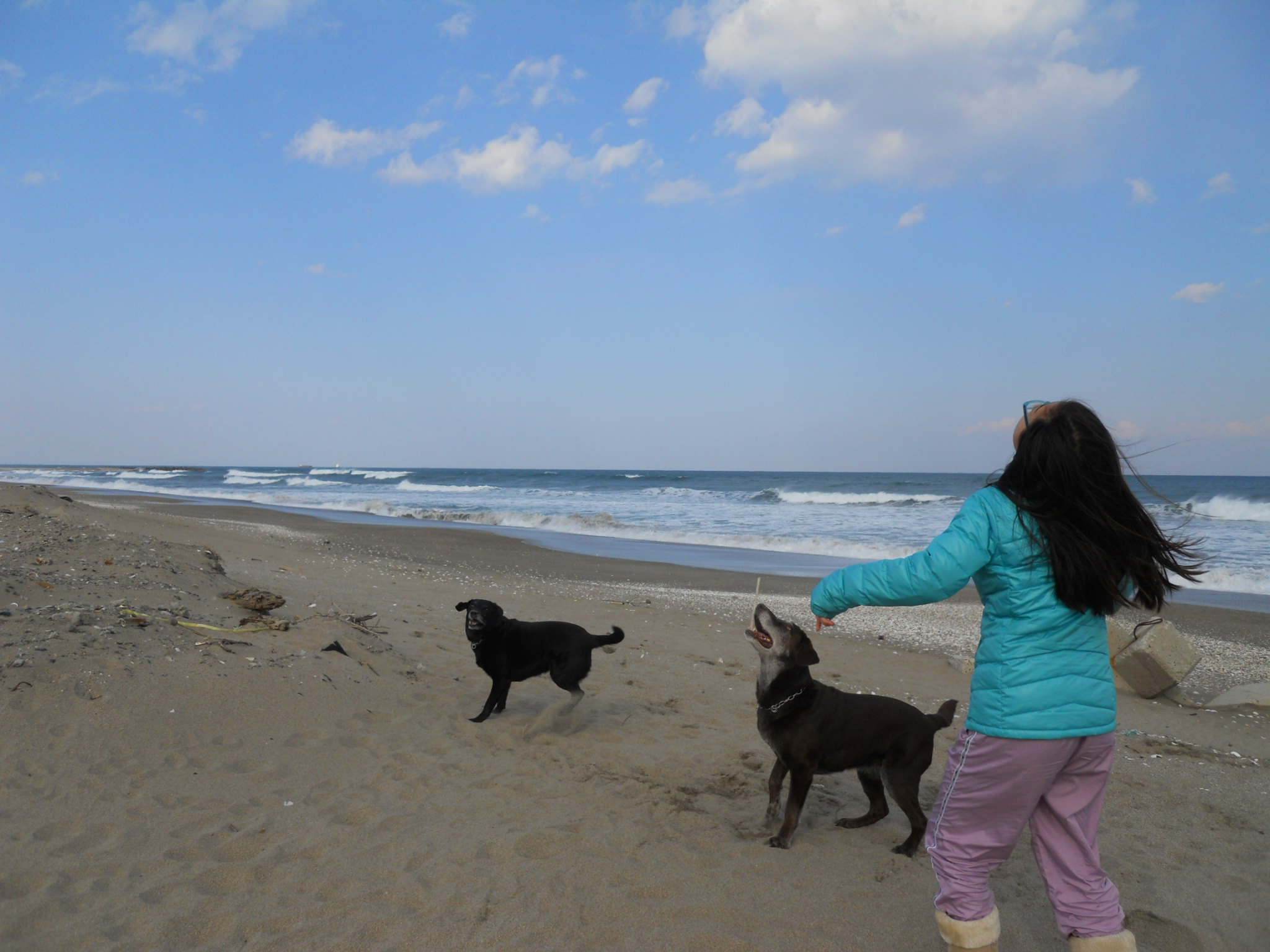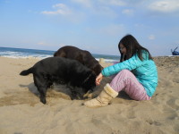 久しぶりにメイクとグラッシーと海に散歩に来た。