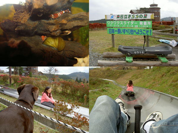 由比辺りから見る駿河湾は いつもと違うエメラルドグリーンの海。 残念ながら富士山は雲に隠れて見えなかった。 紅葉もまだまだって感じ。 去年の足柄辺りは綺麗だった。 こうして旅行気分でやらないと嫌になる。