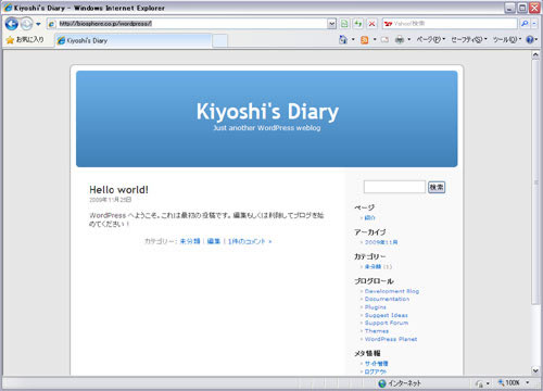 なんてことはないパーミッションの 設定ミスで動かなかった。 無事インストールできた所で今日は終わり。 これからテンプレートを好みのものに変更する。