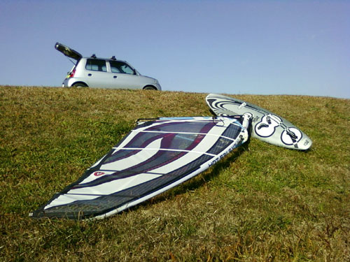 午前中に終わり風も吹き始めウインドモードへ。 南風で暖かく最高のコンディションかと思ったら大雨。 しかも風が弱くなってる。