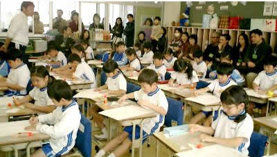 小学校に入って2度目の授業参観。 授業の前に先生がグループを決め 喧嘩をしないで仲良くできるチームが勝てる などと話をしてからスタート。