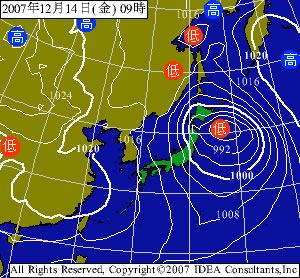 最高のクリスマスの始まりを予感させる天気図。 起きてみると無風。 あの天気図で吹かないはずがない。 朝練はあきらめて、夜の誕生会の準備をしてると、次第に風は強くなる。