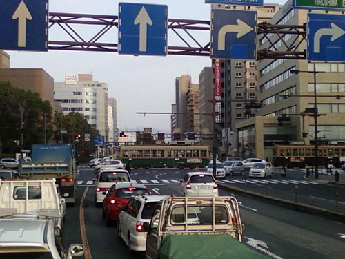 走り始まると渋滞。 解消してもダラダラ走行。 広島に入るとさらに渋滞。 広島市内はまったく動かない。 それでもチンチン電車が通過したりで観光モードに切り替え。 看板には平和記念公園の看板も出て広島に居ると実感。