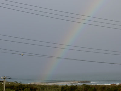 雨が降ると海には虹のアーチが。 上のほうは雲が邪魔をしてたけど 綺麗に半円を描いていた。