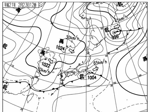 そんなこんなで明日の天気図と予報を見ると 南西が吹きそうな感じ。 春一番を逃したから 今年初の南風を明日は楽しみたい。