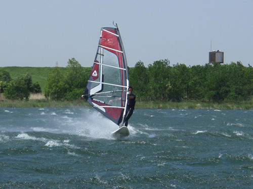 あまり期待していなかった俺は、ゲコ練習覚悟で出艇。 弱いけどそよそよ走る。 ゲコの沈め方、回しかたがよく分かって成果大! 180°ちゃんと回ったし。後は裏風利用して、立て直し、風を入れ替えてさらにボードを180°回せば成功。 セイルが倒れちゃったけど、なんとなく270°くらい回ったんだよな。 今年にはメイクできる。