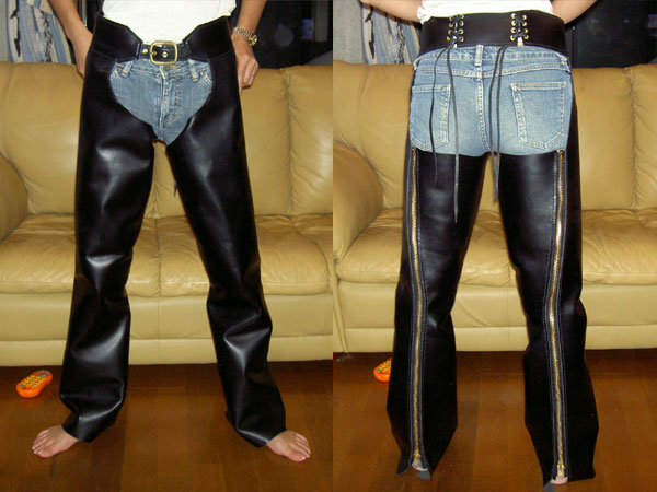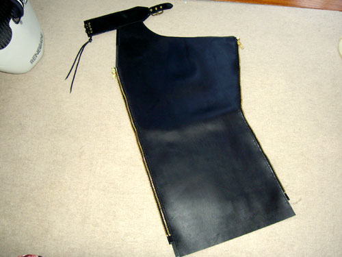 俺のチャップスは手作りで、それを見てねーちゃんが作ってくれって言うからもう一着作った。 厚めの革が良いって事で、縫い目は折り返しなしのシンプルな仕上がり。 俺のより革が厚いからしっかりしてるけど、馴染むまで動きにくそうだな。 まぁ、革は動きにくいもんだから安全考えれば、しっかりした革が良いのか。