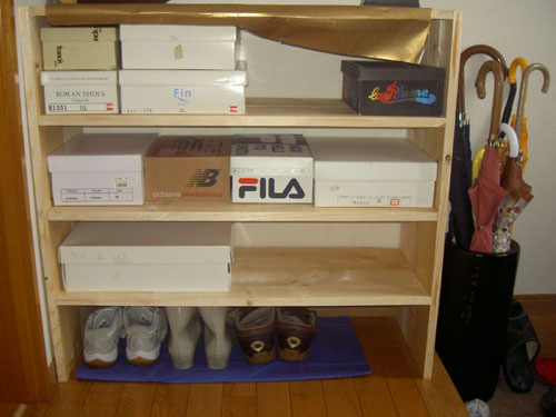 外にゴミ置き場を作り ちょっとしたものを置くための棚を置いた。 その棚が洗面所に置いてあったのを移動。 なくなった分、三段ボックスを2つ組み立て。