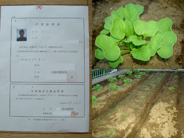 今日も午後からの教習で午前中は家のこと。 畑の手入れで間引きと土もり。 にんじんに細かい葉が生えてきてにんじんらしくなった。 大根も大根と分かる葉が出てきた。 白菜は弱くかなり間引いて 新しい葉だけにしてあげた。