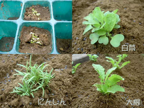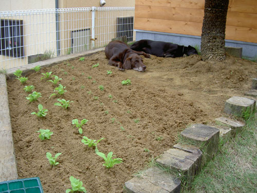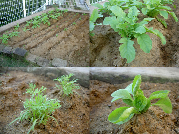 畑の野菜も順調に育っている。 白菜がダメになったのを 種が余っていたから少し追加で作り直し。 芝生も種が芽をだしこれからが楽しみ。 目土をし水やりをして終了。 一日が終わるのが早い。
