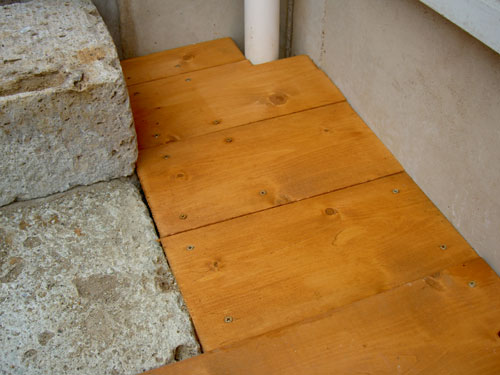 帰ってきてから玄関の床張り。 少しの部分だけに板を何度もカットして微調整。 これで玄関の土の部分が隠れてくれた。