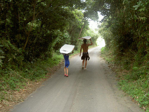 正面のビーチは波のパワーがあって サイズがないと見えても昨日のゲレンデよりサイズがある。 しかもパワーもあってチビ一人では乗れない。 しかたなくファンボードだけどタンデム。 サイズの大きい波に乗れてスピード感覚や パワーの強さにも慣れたと思う。