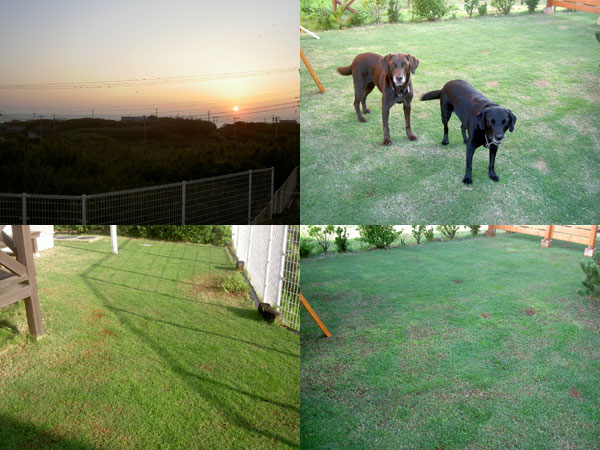 帰ってからは疲れがひどく 休憩してから芝の手入れ。 種から植えた芝と 新たに敷いた芝が育ったからカット。 目土をしてある場所はしっかり詰まってきた。 もう少し目土をしてあげないと綺麗に育たない。 それでも1ヵ月で綺麗になってきた。