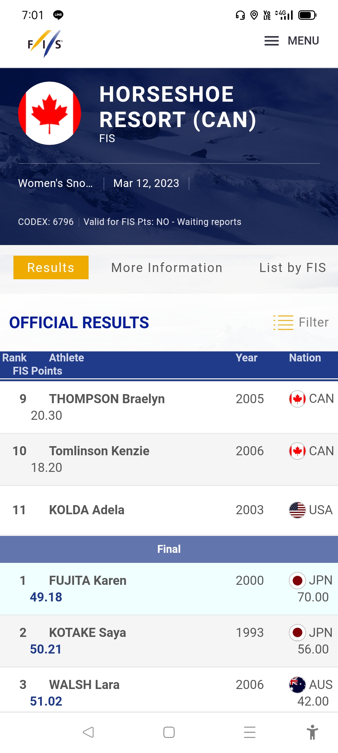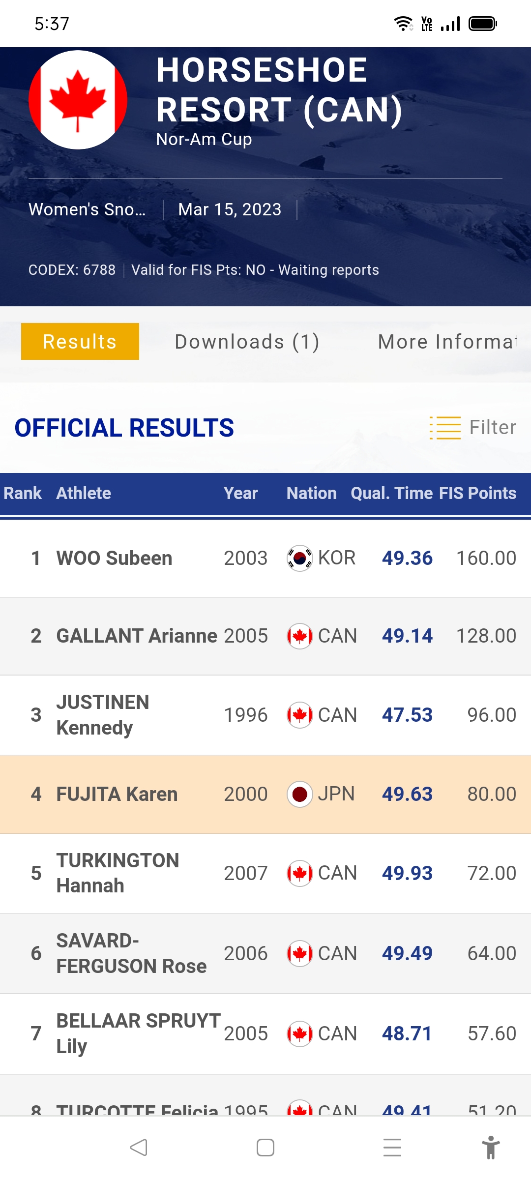 FISレースよりは10ポイント多く獲得。