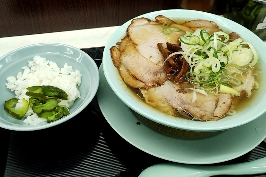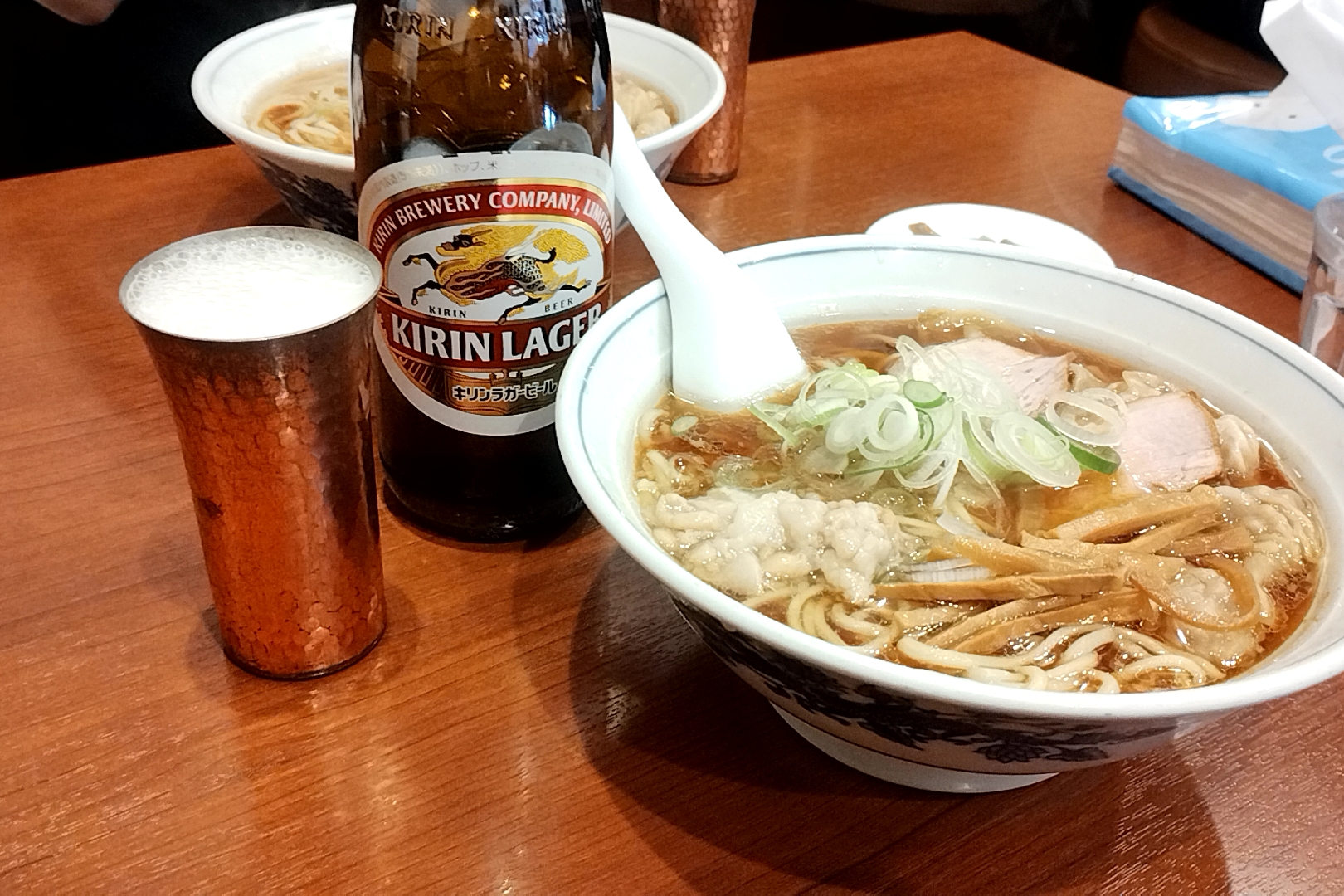 ワンタン麺とビール。