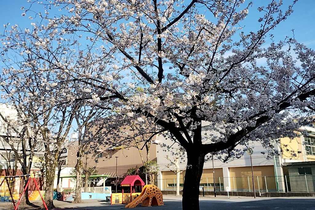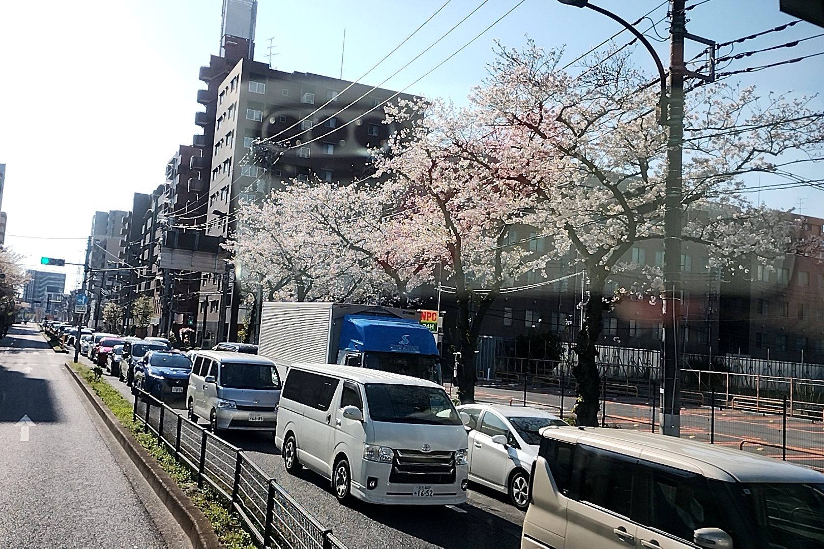 通りの桜も満開。
