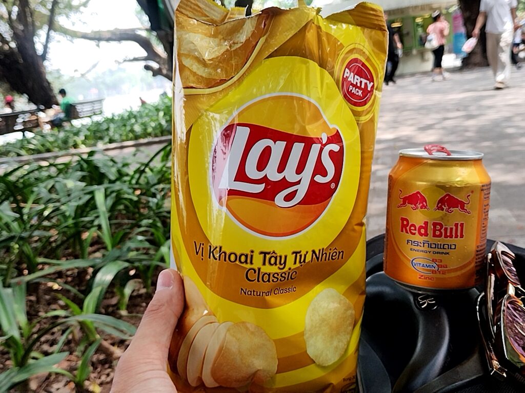 お腹空いてチップとビタミン。