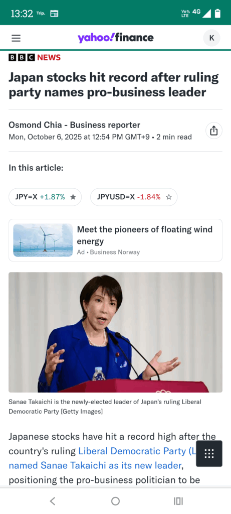 カテゴリー 日常 休み 投稿者 作成者: kiyoshi 投稿日 2025年10月6日 休み へのコメントはまだありません 高市新総裁の初値動き。 積極財務になると予測さて円安。 輸出企業と海外へ投資が儲かるシステム。 投資をしない人は苦しむようになる。 輸入に頼る日本は 円の価値が下がり物価が上がる。 タイミングがわからないから 上がるだろうと数日前に買っておいて良かった。